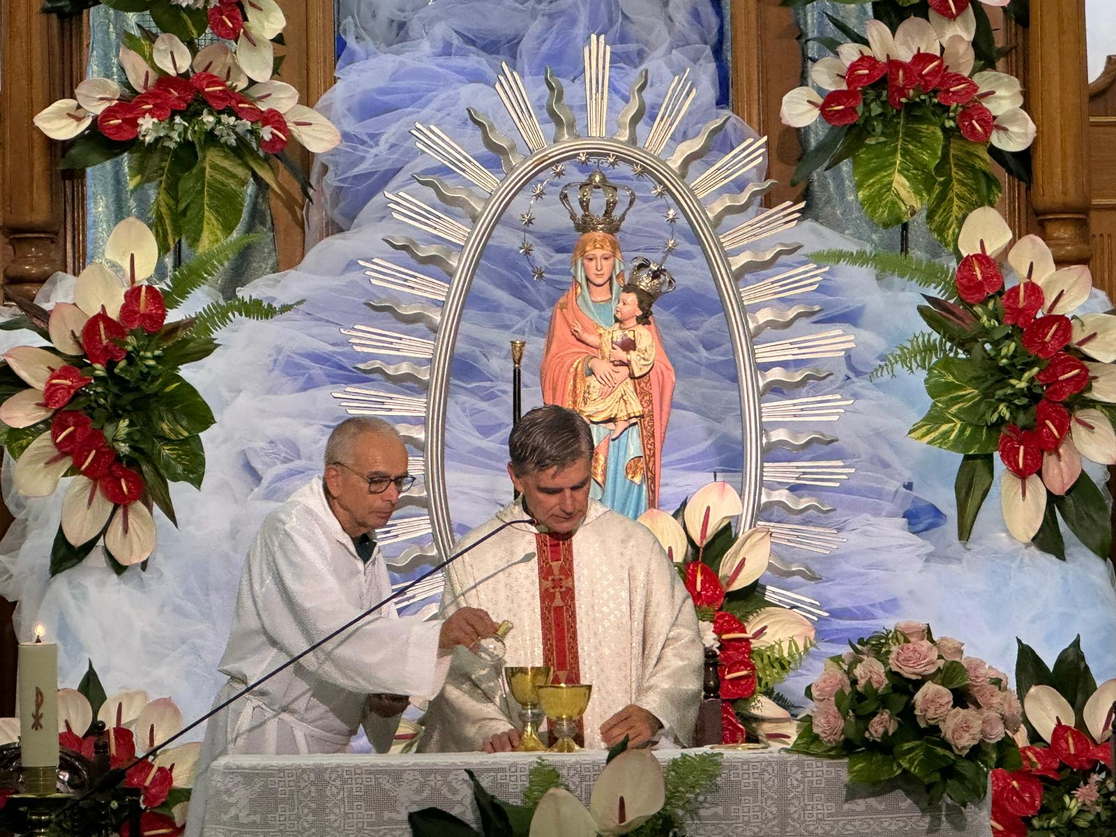 La ceremonia, cargada de profunda devoción, fue seguida por numerosos fieles que se congregaron en el santuario para rendir homenaje a la patrona.