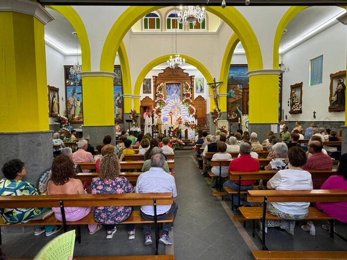 Este sábado, el santuario de Lomo Magullo fue el escenario de una emotiva ceremonia religiosa, donde la venerada imagen de la Virgen de las Nieves fue elevada a su camarín. El evento, que tuvo lugar durante la misa oficiada por el sacerdote Ricardo Miranda, titular de la Parroquia de Nuestra Señora de las Nieves, comenzó a las 19.30 horas tras el rezo del Rosario.