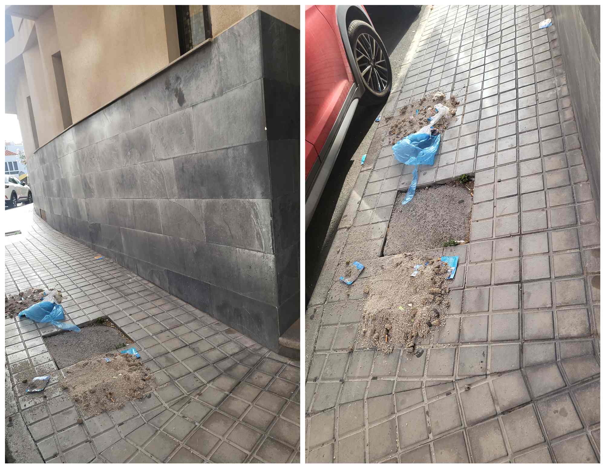 Vecinos del barrio de La Herradura, en Telde, ha expresado su malestar por la repetida aparición de basura y excrementos de gato frente a sus viviendas. Denuncian que este es el segundo incidente en el que un vecino, al parecer, ha intentado desechar arena y heces de gato, pero ha dejado la bolsa rota en la acera, lo que ha provocado una situación insalubre y desagradable justo debajo de las ventanas de sus casas.