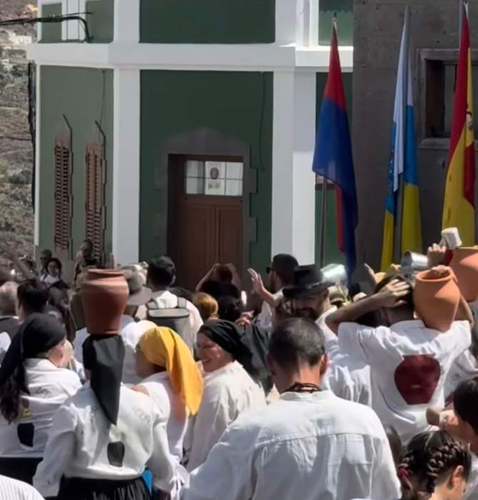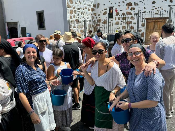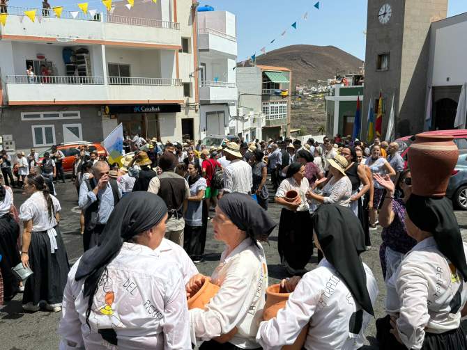 Era un secreto a voces. Llevaban semanas y días organizándose y cumplieron con ese rumor que decían entre ellos “la fiesta es del pueblo y nadie nos la va a quitar”. Más de 300 vecinos de Lomo Magullo se echaron espontáneamente a la calle y, al grito de “un año más nos volvimos a mojar" y "esta sí que es un pedazo fiesta", no permitieron que la Traída del Agua se suspendiera por terceros. Se concentraron en la puerta del santuario de Las Nieves y al filo del mediodía comenzaron su tradicional recorrido por la calle de de La Virgen.