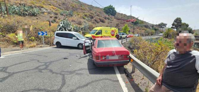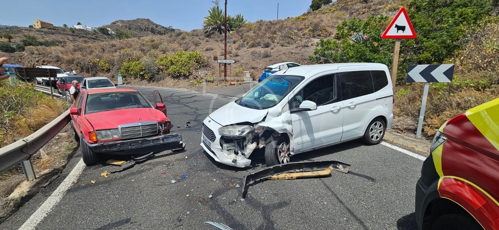 El siniestro tuvo lugar en el kilómetro 3 de dicha vía, en el sector de La Solana, cerca del desvío a Lomo El Rayo, y ha dejado un saldo de dos personas heridas, una mujer de 64 años con lesiones leves (cervicalgia) que fue llevada al Centro Médico Arnao, y otra, un hombre de 72 años, que sufrió un golpe torácico de carácter moderado, trasladado al Hospital Insular..