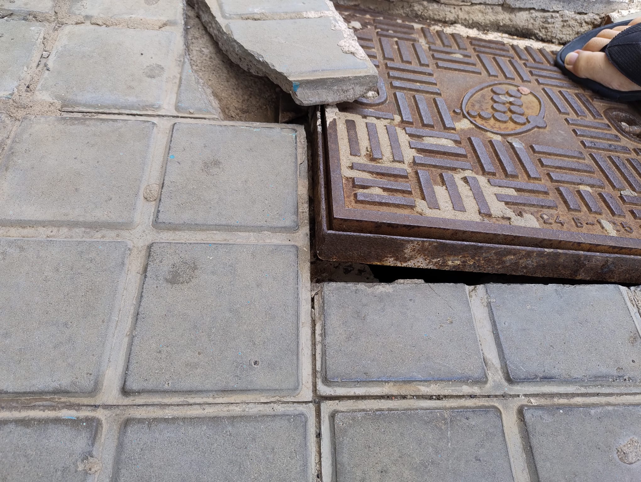 Vecinos del edificio Tania, en la calle Paraguay de La Herradura, denuncian que justo en la entrada del portal hay una tapa de telefonía completamente desencajada y hundida.