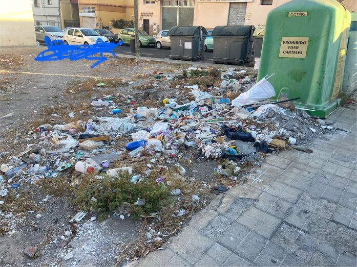 El terreno, que se encuentra junto a un área de contenedores para la recogida de residuos orgánicos y selectiva, ha acumulado una gran cantidad de desechos, lo que ha generado preocupación entre los residentes.