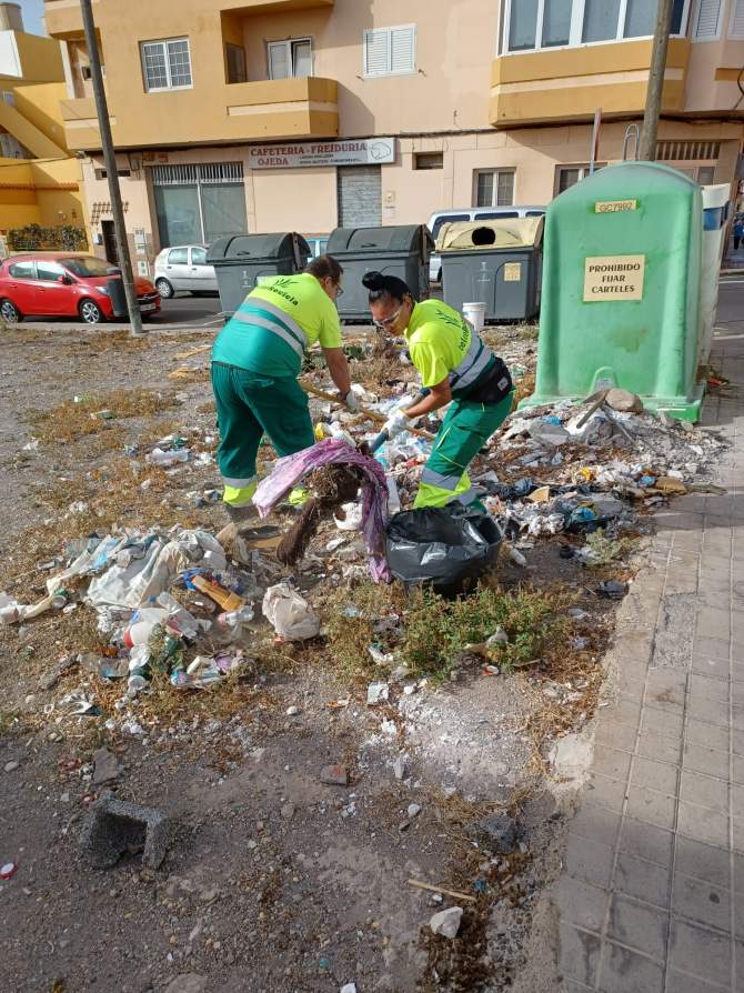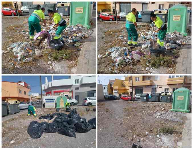La Concejalía de Limpieza Viaria procedió durante la mañana de este domingo a eliminar el basurero localizado en un solar privado en el sector poblacional de Ojos de Garza, en la esquina de las calles de Juan Ramón Jiménez y Leopoldo Matos, tras la denuncia vecinal divulgada ayer por TELDEACTUALIDAD.