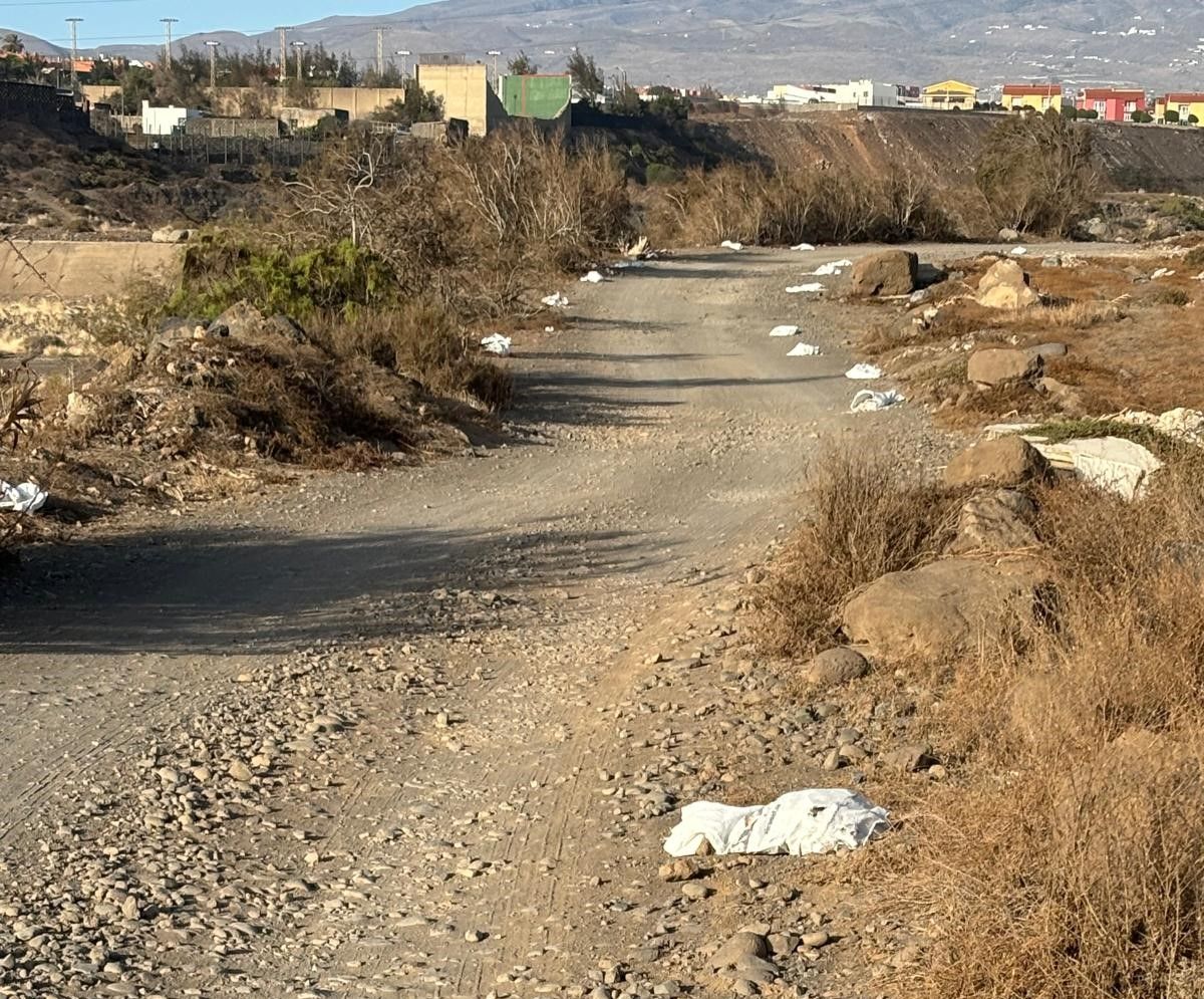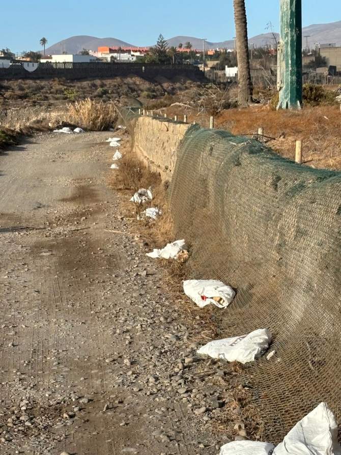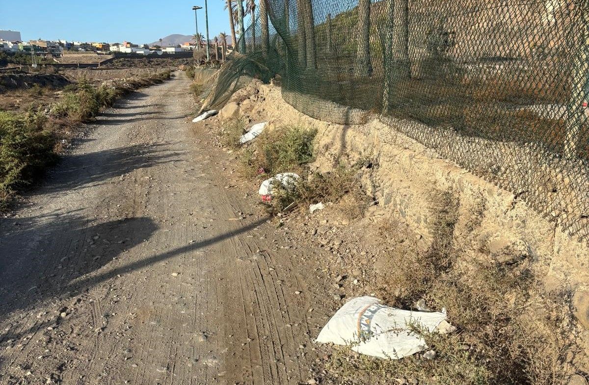 Usuarios del corredor paisajístico que atraviesa el Barranco Real de Telde han denunciado la presencia de alrededor de 70 sacos de escombros esparcidos a lo largo de su recorrido, a la altura del restaurante El Cortijo.