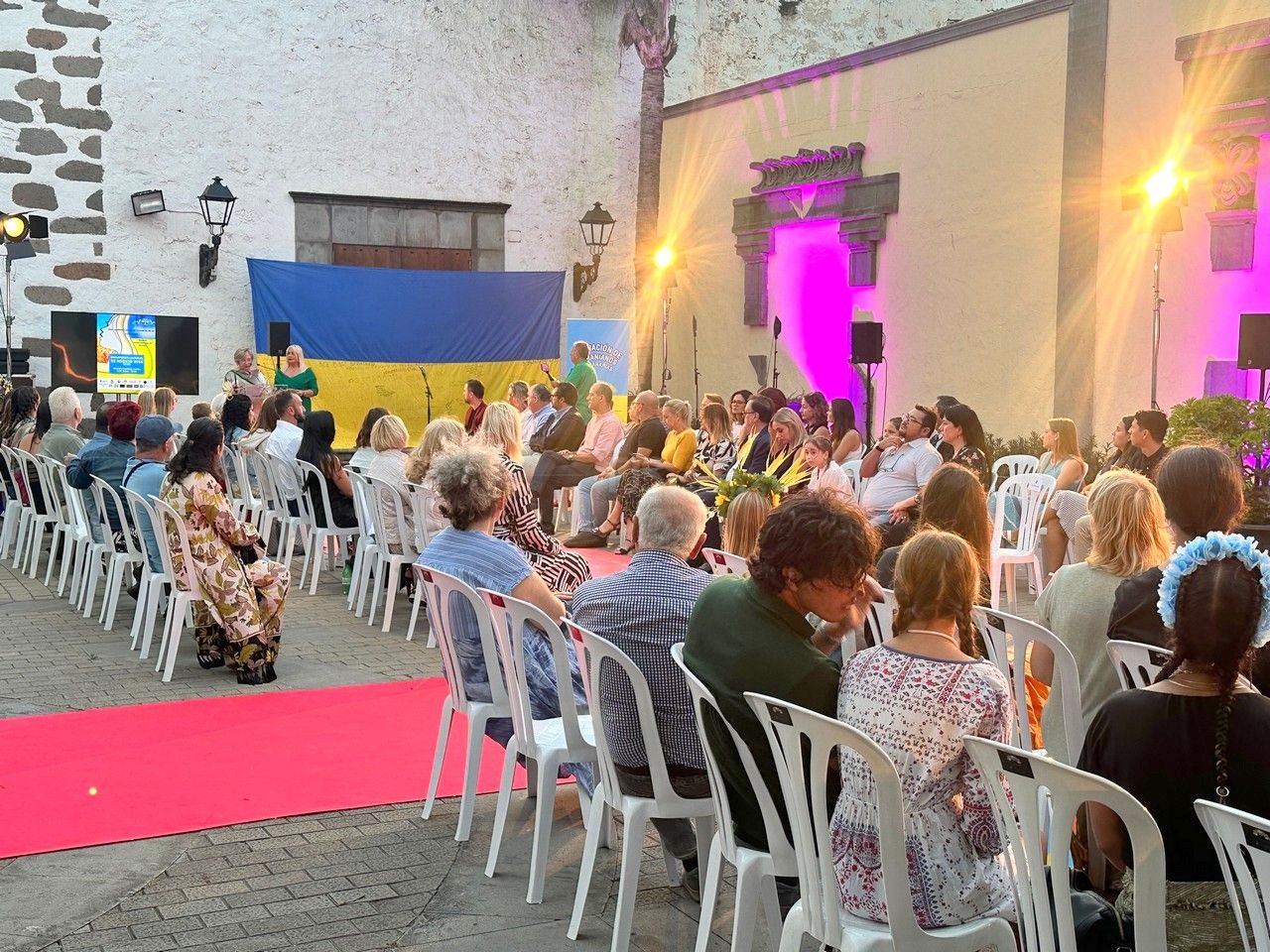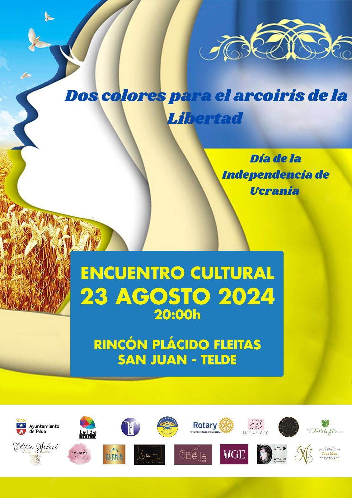 Este viernes 23 de agosto, a partir de las 20.00 horas, la ciudad de Telde celebró en el rincón Plácido Fleitas, junto a la plaza del emblemático barrio histórico de San Juan, un emotivo acto cultural en el día de la bandera y de la independencia de Ucrania impulsado por la asociación Dos Tierras Dos Soles, constituida por refugiadas ucranianas y presidida por Olesya Lylak Chyzhvych, con el respaldo del Ayuntamiento.