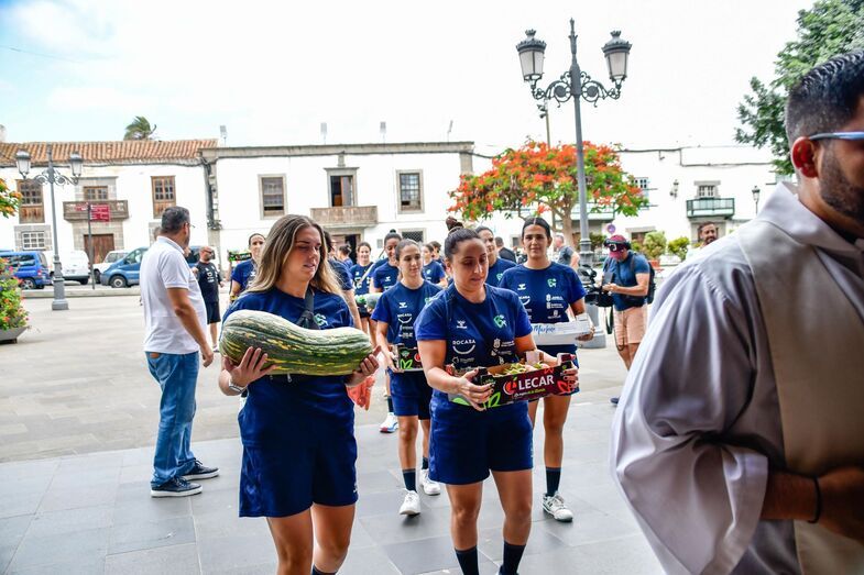 Esta ofrenda es una cita habitual en el calendario del equipo en las fechas previas al estreno oficial de la temporada. A pesar de ser un acto recurrente, la comitiva del club teldense estuvo repleta de caras nuevas tras la renovación de la plantilla, con varias jugadoras debutando en este tradicional acto.