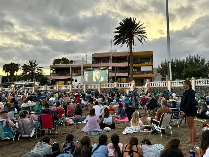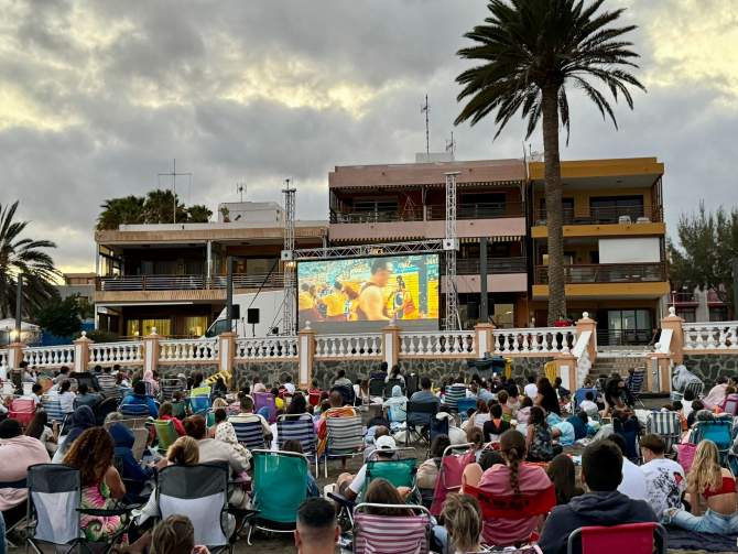 La segunda proyección del Cine de Verano en Salinetas continuó este jueves con el mismo éxito que marcó la inauguración del ciclo. A partir de las 20:30 horas, la película Campeones, la comedia dramática de 2018 dirigida por Javier Fesser, atrajo a cientos de personas que llenaron casi toda la parte norte de la playa teldense, disfrutando desde la arena del filme proyectado en una gran pantalla ubicada en el paseo costero.