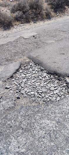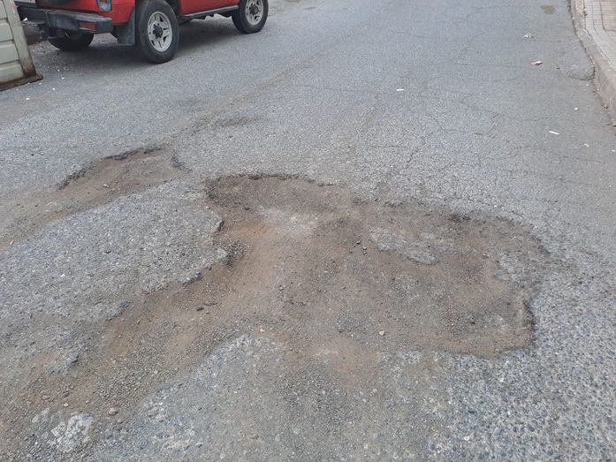 Vecinos de El Calero Bajo denuncian un gran socavón en el cruce de la calle Tenesoya con Harimaguada, que ocupa buena parte de la calzada, por lo que es difícil de esquivar.