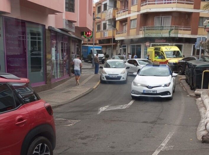 Una mujer sufrió una caída este viernes en la puerta del comercio Modas Shangai, ubicado en la calle Poeta Fernando González de Los Llanos, y tuvo que ser evacuada en una ambulancia con un traumatismo en la cabeza.
