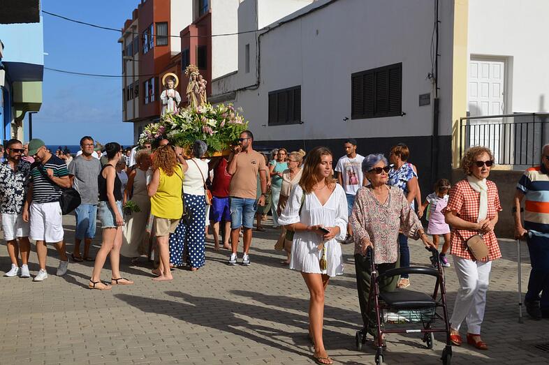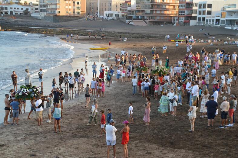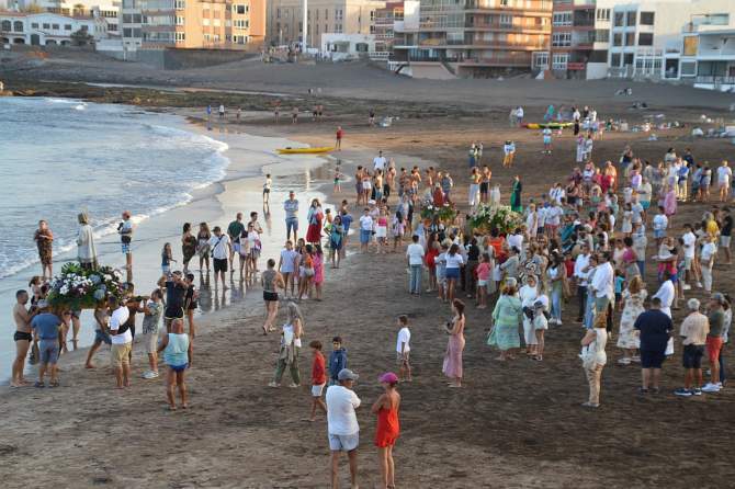 La ceremonia, que comenzó en la Iglesia de Clavellinas, contó con la participación entusiasta de cientos de personas que se congregaron a lo largo de las playas y avenidas de Melenara, Taliarte, Salinetas y Clavellinas para acompañar el desfile religioso.
