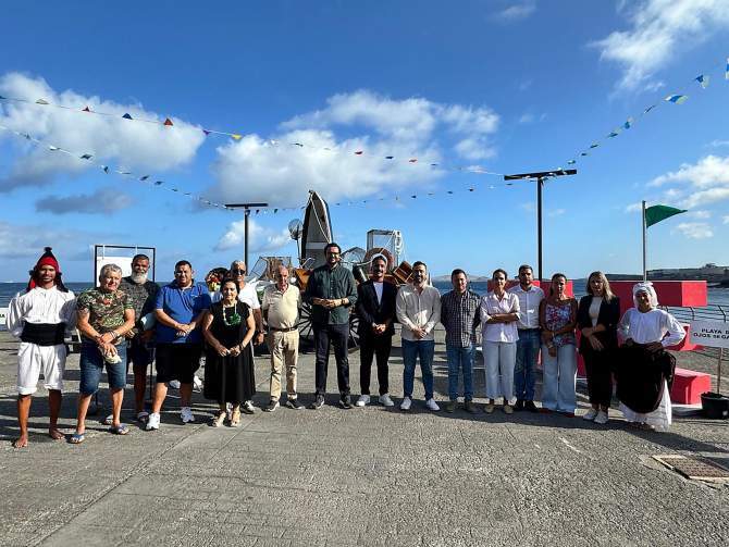 La obra, diseño del artista teldense Nauzet Afonso, fue presentada hace unos minutos en el muelle de Melenara por el alcalde Juan Antonio Peña y el diseñador, junto a otros representantes de la Corporación local y de dirigentes vecinales de los distintos núcleos costeros del municipio.