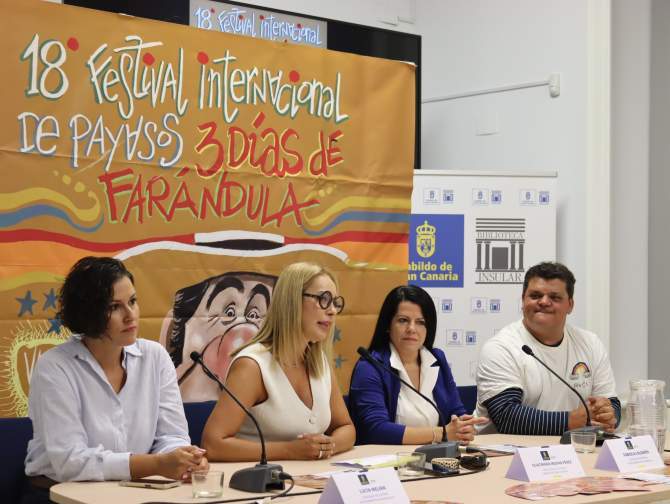 Del 6 al 13 de septiembre se desarrolla la 18º edición de ‘3 Días de Farándula’, en el que las artes escénicas vinculadas al clown y al circo se funden en una programación que cuenta con una muy atractiva oferta para toda la familia. Así lo han dado a conocer, en una rueda de prensa celebrada esta mañana, Guacimara Medina, consejera de Cultura del Cabildo de Gran Canaria; Fabiola Calderín, alcaldesa en funciones de Valsequillo, en sustitución de Franciso Atta; Lucia Melían, concejala de Cultura del Ayuntamiento de Valsequillo y Luis Monzón, director del festival ‘3 Días de Farándula’.