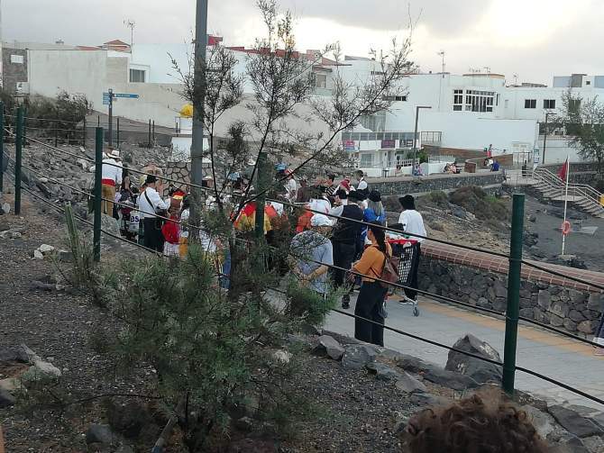 La tradicional romería popular de La Garita, en honor al Sagrado Corazón de Jesús, se celebrará este viernes con un recorrido inédito a partir de las 19.00 horas. El desfile de parrandas, carretas tiradas por bueyes y vecinos comenzó en la calle Buganvilla y continuó por el paseo marítimo hasta la sede de la Asociación de Vecinos Punto y Seguido, punto de encuentro.