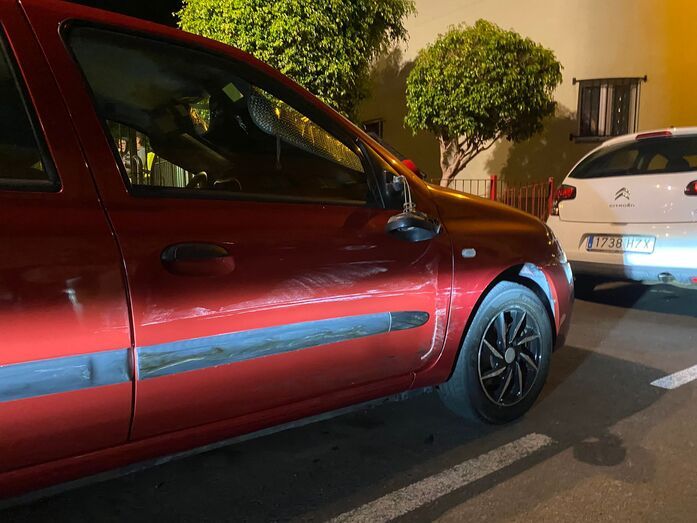 El dueño de un Renault Clío, que fue golpeado por otro vehículo mientras estaba estacionado en la calle de Roque Aguayro, en el barrio de El Caracol Alto, en Telde, pide colaboración ciudadana para encontrar al responsable. El incidente ocurrió ayer sábado, 7 de septiembre, entre las 19.00 y 23.00 horas.