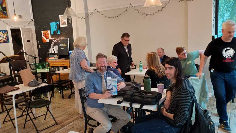 Al mostrar Madres y explicar el profundo sentimiento que llevó a escribir un libro sobre nuestras doce madres canarias, sentí la ternura y complicidad del atento público asistente. Mary, una señora mayor, que pertenece a un club de poesía de Boston, me acarició la cara como una madre y compró un ejemplar. Michael Macarthy y Philp Noewo, estudiante universitario de español y profesor procedente de Kansas City, se comprometieron, por propia iniciativa, a traducir Madres al inglés y trabajar mis relatos de Elogio de lo invisible con alumnos de español de la Universidad de Boston.