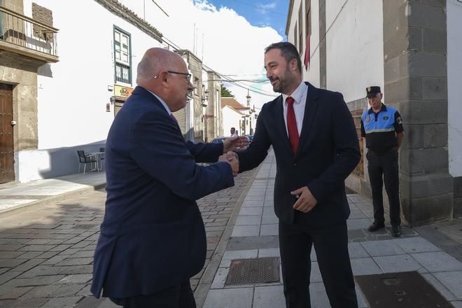 plaza de San Juan. El protocolo obliga. El agüimense ya había visitado las oficinas municipales de El Cubillo, siendo regidora Carmen Hernández. Por tanto, se cumplió con lo suyo: presidente y alcalde en un encuentro que luego se trasladó al salón de plenos donde abordaron inquietudes y distintos pareceres.