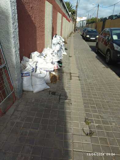 Este jueves, alrededor de las 14.30 horas, un furgón de alquiler descargó varias bolsas de escombros en la calle de La Portada, en el barrio teldense de San Antonio, al lado del colegio público.