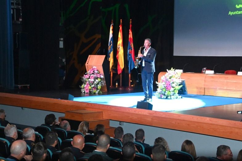 El acto presentado por Alicia Suárez coincidió con la celebración del Santo Cristo, recientemente nombrado patrón del cuerpo de seguridad por el Pleno municipal, lo que dio aún mayor simbolismo a la ceremonia que comenzó a las 12 del mediodía y duró algo más de hora y media, finalizado a las 13.39 horas. Primeros se entregaron las distinciones a los jubilados vivos y, tras un paréntesis musical a cargo del saxofonista Neftalí Robaina, se hizo lo propio a los familiares de los policías ya fallecidos. En nombre de todos ellos intervino el agente José Avelino Suárez Ajeno.