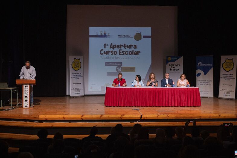El conceal teldense Juan Pablo Rodríguez, primero por la derecha/TA.El salón de actos del CIFP Felo Monzón ha acogido la celebración de la primera edición de la Apertura del Curso Escolar en Gran Canaria y que ha organizado la Federación Insular de Ampas ‘Galdós’ que preside Marian Álvarez.