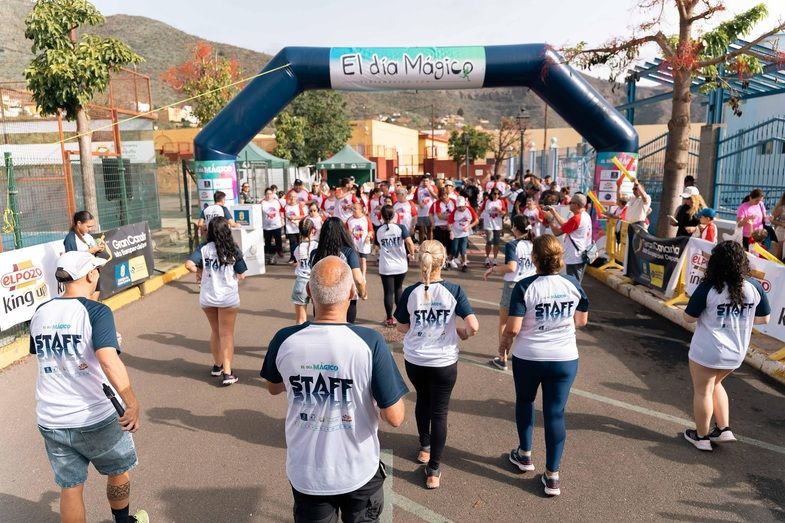 Los usuarios del Centro Ocupacional de Valsequillo fueron los últimos en colocarse bajo el arco de salida de las carreras infantiles del Día Mágico. Tras calentar al ritmo de los últimos 'trend', y tras la cuenta atrás, salieron disparados acompañados de familiares y monitores en un recorrido donde los aficionados no pararon de animarles en todo el trayecto.