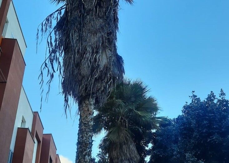 Aseguran que tienen miedo de que les caiga encima alguna de las palmeras debido a su mal estado.