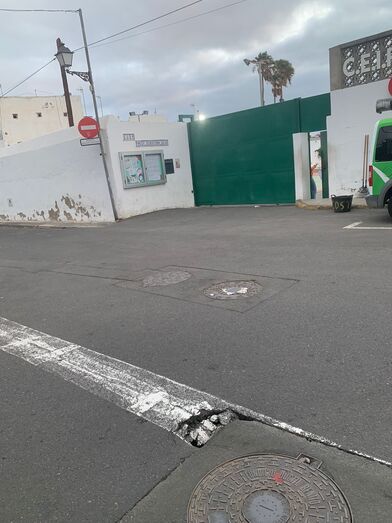 Un bache de grandes dimensiones ha surgido en la calle León y Castillo, frente al acceso del colegio Poeta Fernando González, en el barrio de San Juan.