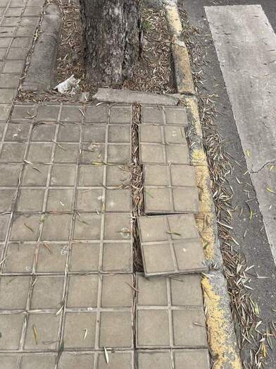 Vecinos de La Garita denuncian el mal estado de las aceras de la calle Tomillo, frente a las viviendas sociales. Aseguran que un día sí y otro también, se tropiezan con las baldosas levantadas.