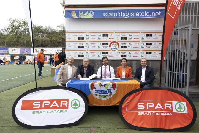El vicepresidente de SPAR Gran Canaria, José López, y el director general de SPAR Aradasa, Alejandro Fleitas, renovaron el acuerdo de patrocinio para esta temporada 2024/2025 junto a Francisco Rodríguez Pulido, presidente del CF Panadería Pulido Vega de San Mateo, los miembros del equipo, acompañados por Augusto Hidalgo, vicepresidente primero y consejero de Obras Públicas e Infraestructuras, Arquitectura y Vivienda del Cabildo de Gran Canaria.