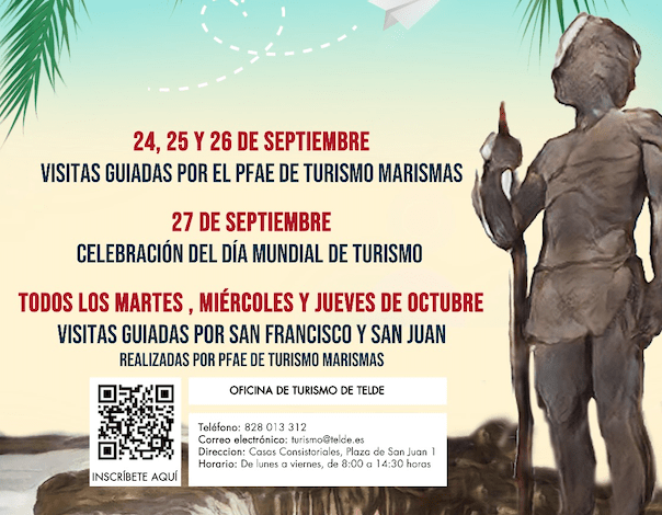 Desde la Concejalía de Turismo del Ayuntamiento de Telde y con la colaboracion del PFAE Marisma, del 24 al 26 de septiembre se llevarán a cabo visitas guiadas por la zona fundacional de San Juan, el barrio histórico-artístico de San Francisco y jornadas de puertas abiertas en el museo etnográfico de la Casa Condal, ofreciendo así a los participantes la oportunidad de descubrir la rica historia y patrimonio de la ciudad. La celebración culminará el 27 de septiembre, jornada en la que se conmemora oficialmente el Día Mundial del Turismo.