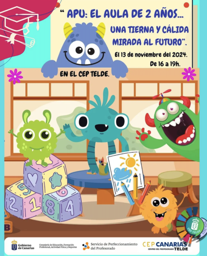El Centro del Profesorado (CEP) de Telde, acoge el próximo 13 de noviembre, de 16.00 a 19.00 horas, la APU El aula de 2 años… una tierna y cálida mirada al futuro, a cargo de Alma Teresa Enfedaque Rodríguez.