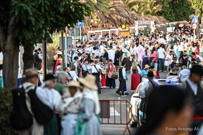 Tres horas de desfile con música canaria, coplas al santo patrón, bailes folclóricos, demostraciones del salto del pastor o del silbo canario y mucha devoción hicieron disfrutar a todos los asistentes de una gran fiesta canaria que se prolongó con encuentros de familias y amigos por las calles del casco histórico del municipio durante una noche canaria en la que actuaron varias parrandas y que continúo con una verbena.