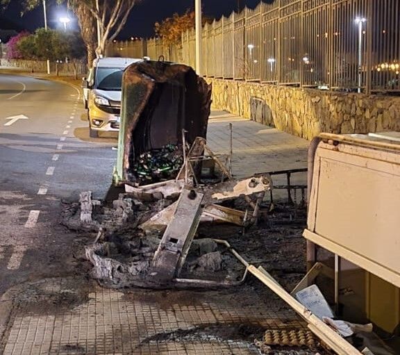 Durante la madrugada de este domingo, un incendio en Telde destruyó por completo un contenedor de basura destinado a la recogida de residuos orgánicos y causó daños en otros dos contenedores para la recogida selectiva de envases de vidrio, papel y cartón. El incidente ocurrió en el Valle de Jinámar, cerca del vallado perimetral del Parque de las Mil Palmeras.