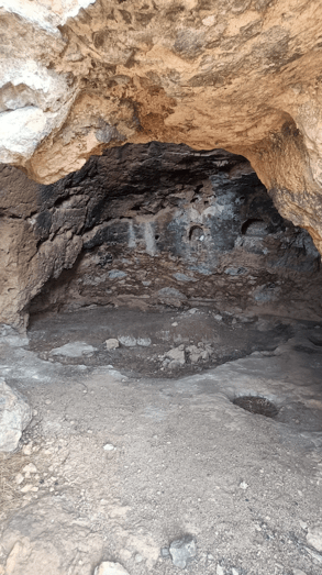 Abel nos acercó de un modo didáctico el modo de ocupación de las cuevas. Al parecer, en un primer estadío, tras la arribada de los primeros habitantes, la ocupación habitacional sucedió en cuevas naturales existentes. Sería luego cuando adecuaría estos especios, actuando sobre ellas, artificializándolas. Se cree que esta adecuación de las oquedades naturales no sucedió en un comienzo sino con la llegada de los siglos X y XI, momento que se cree la fecha de una segunda arribada a las islas, estimándose la llegada de los primeros habitantes en torno al primer siglo de nuestra era. El imparable avance del desierto por el sur, como consecuencia de la última glaciación, y el imparable avance del imperio romano por el norte crearon las condiciones perfectas para la colonización de las islas, bien por huída, deportación o llegada voluntaria. Trigo, cebada, higueras, perros, cochinos, cabras… son plantas y animales que llegaron con ellos. No es por lo tanto una arribada casual. Estas cuevas de Caballero son claros ejemplos de alejamiento de la población recién llegada hacia el interior de la isla. La razón es indudable, una buena parte de estos primeros pobladores se alejan de las zonas vulnerables costeras, sujetas a las razzies esclavistas que practicaban diversos pueblos navegantes.