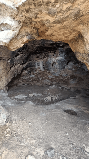 Se trata de una amplia cueva en cuyas paredes se encuentran grabados o en bajo relieve, mas de trescientos triángulos púbicos femeninos. Éstos cubren por completo las paredes a excepcion del suelo y el techo y simbolizan la fertilidad a través de la representación de la vulva femenina. ¿Singularidades? El arqueólogo Abel Galindo afirma que es la cueva con mayor número de triángulos púbicos por metro cuadrado, del mundo.