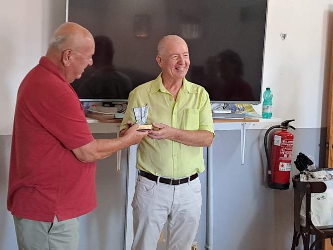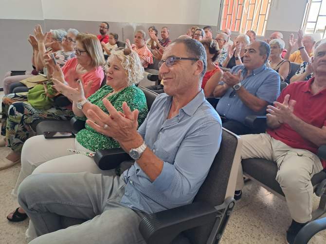 Hernández Ojeda recibió el galardón acompañado de su familia, de amigos y de otros asistentes a la ceremonia, que se desarrolló en la primera planta del local social y que contó con la actuación del saxofonista Fernando Jiménez.
