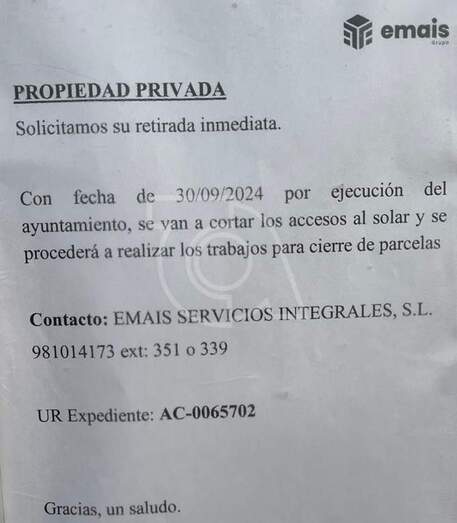 Emais ha emplazado a las personas que residen en el asentamiento a su "retirada inmediata", informando que, por requerimiento del Ayuntamiento de Telde, se procederá a cerrar la parcela. Los accesos serán bloqueados como parte de los trabajos que se llevarán a cabo.