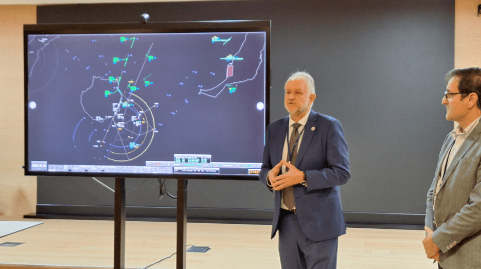 El servicio de aproximación al Aeropuerto, que ENAIRE presta desde su Centro de Control de Canarias, gestiona las trayectorias de salida y llegada desde el momento en que las aeronaves ya no están a la vista de la torre y llega hasta una altitud aproximada de cuatro kilómetros.