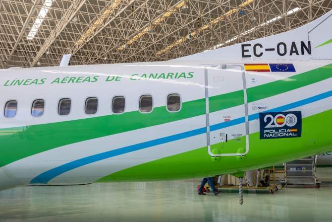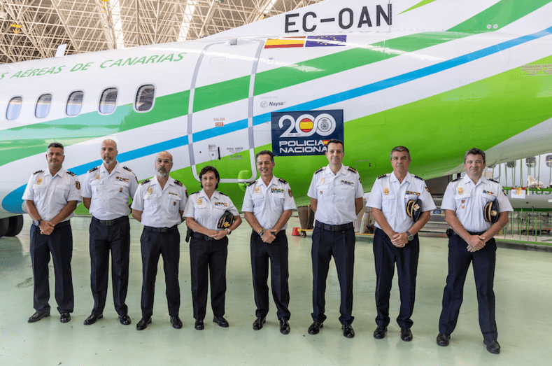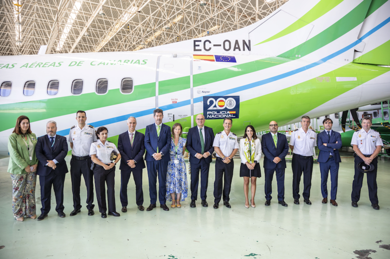 La compañía aérea Binter se ha unido a la celebración del 200º aniversario de la Policía Nacional luciendo en uno de sus aviones ATR 72-600 el logotipo diseñado para esta efeméride.