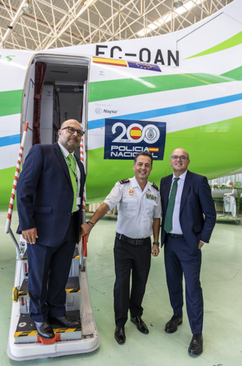 El coordinador general de Binter, Santiago Guerra, y su director Comercial y Marketing, Miguel Ángel Suárez, fueron los encargados de recibir a los invitados junto a los directores de las empresas de mantenimiento y del operador del avión, además de su responsable de Seguridad. El delegado del Gobierno en Canarias, Anselmo Pestana, acudió junto a una destacada representación de la Policía Nacional encabezada por el jefe superior de la Policía en Canarias, Jesús María Gómez Martín; la comisaria principal, jefa regional de Operaciones, Sagrario de León Cruz; el comisario principal, jefe provincial, Francisco Javier Berzal Tejero; y el comisario jefe de la Comisaría local de Telde, Francisco Javier Jiménez Ávila, entre otros.