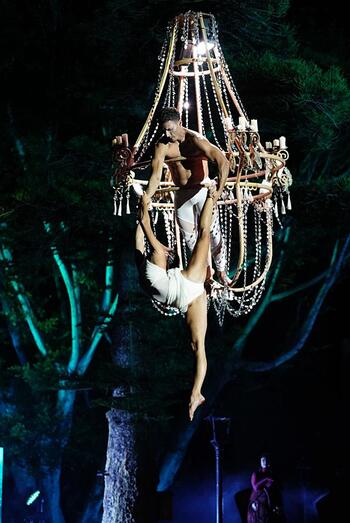Tras dar la medianoche, el pueblo volvió a quedarse a oscuras para que aparecieran en escena la lujuria, la gula, la avaricia, la pereza, la ira, la envidia y soberbia, repartidas a lo largo de cinco escenarios, los pecados capitales, fueron el hilo conductor de este espectáculo cargado de crítica social. Finalmente, la llegada del perro junto a un gran séquito capitaneado por zancudos sembró el terror a las puertas de la iglesia. Y es que el perro maldito volvió a soltarse de sus cadenas para dejar al municipio sumido en las tinieblas del mal durante algo más de los cuarenta y cinco minutos que duró la puesta en escena.