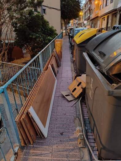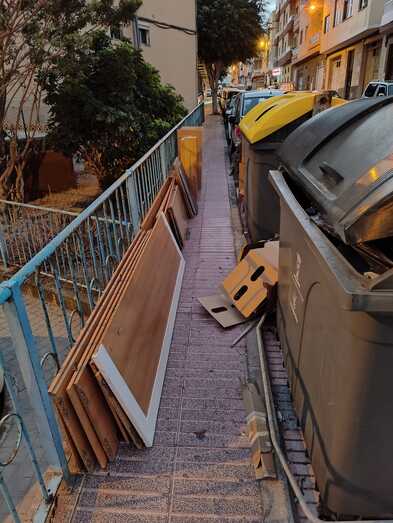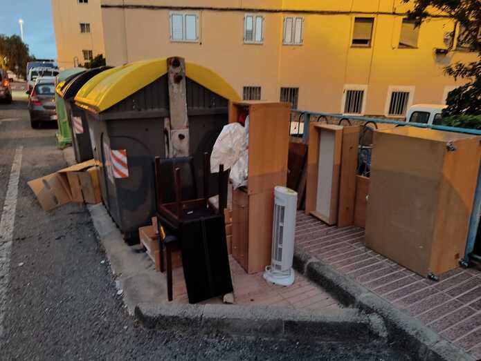 Lo mismo ocurre en la calle Tenesoya en un solar que al lado hay un terreno amurallado y sin encalar los bloques donde un día sí y otro también se dedican los vecin@s a dejar todo tipo de objetos sin respetar los días de recogida.Que falta de vigilancia y por supuesto sancionar a todo aquel que no respeta las normas urbanísticas y que no saben convivir en sociedad.