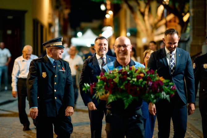En el acto institucional recibieron distinciones agentes y mandos de la Policía Local por la prestación de servicios, por permanencia en el servicio activo y por la Operación Dargal, además de agentes de la Guardia Civil, entre otras distinciones por diferentes méritos. En la Operación Dargal agentes de ambos Cuerpos actuaron de forma coordinada para desarticular un importante punto de venta y consumo de estupefacientes en las Cuevas de Facaracas. La ceremonia concluyó con la habitual ofrenda floral al Capitán Quesada, obra del escultor Juan Borges Linares.