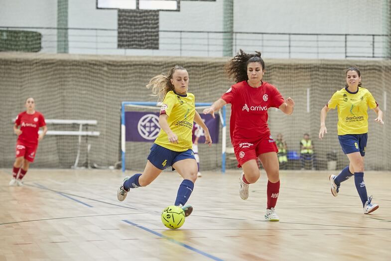 Tiempo muerto de Cristina Gimeno para recolocar a las suyas y un nuevo micro partido. Las madrileñas, con más control de balón, abriendo el campo y haciendo que el reloj corriera. Las grancanarias, con más orden defensivo y rápidas en ataque en busca de sus goles.