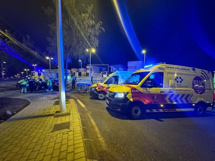 Un grave accidente de tráfico se produjo a primera hora de la madrugada de este domingo en la carretera de acceso al muelle deportivo, pesquero y científico de Taliarte, a la altura de la intersección con la calle de Trasatlántico Sudamérica, cerca de la Residencia Mixta, que dejó un saldo de cuatro heridos.