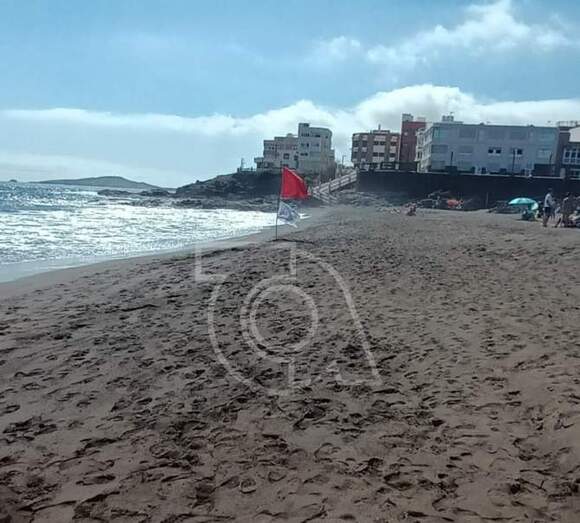 La decisión fue tomada como medida preventiva para proteger a los bañistas mientras se evalúa la situación. Se ha colocado la bandera roja en medio de la plaza junto a otra que indica la presencia de medusas o aguavivas.