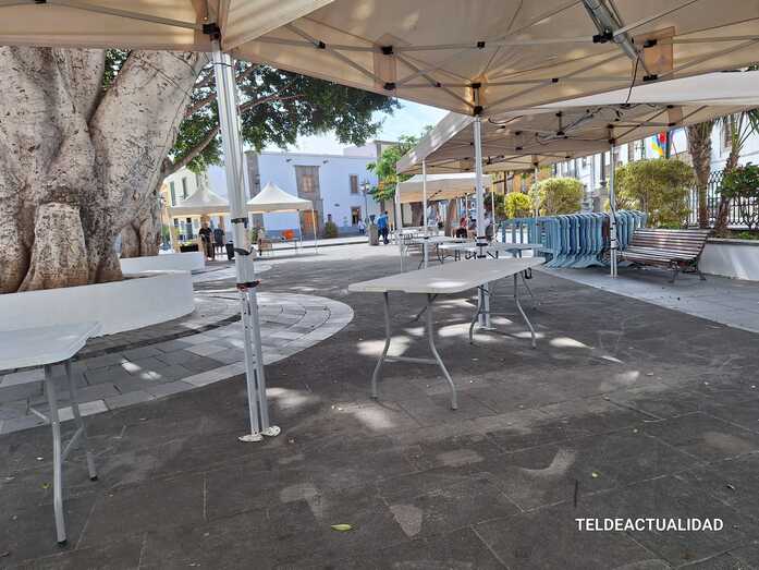 Un grupo de vecinos de San Juan, que se reúne a diario en la plaza del casco monumental para conversar, evitó este viernes un grave atentado contra el patrimonio histórico al alertar a un operario que intentaba taladrar las baldosas de cantería gris para fijar las carpas del evento Hispanocan 2024.