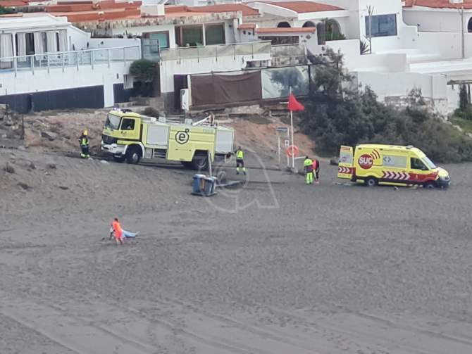 Reportaje gráfico y videos de la ambulancia atascada en la arena de Playa del Hombrre