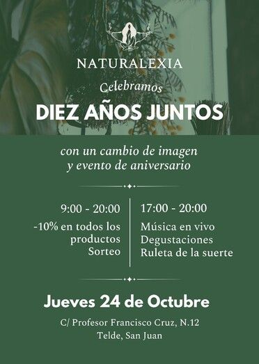 El 24 de octubre será un día especial no solo para Naturalexia, sino también para todos aquellos que han acompañado a Farmasanjuan en su década de trayectoria, siendo testigos de su evolución y crecimiento hacia un futuro lleno de bienestar y compromiso con la salud natural.