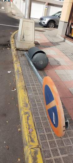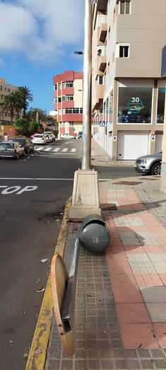 El incidente ha causado daños a una papelera metálica, una señal de tráfico vertical y la base del báculo de una luminaria.
